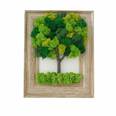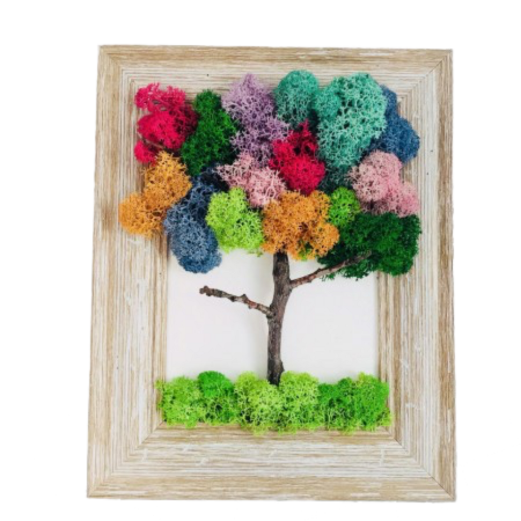 A delicate art piece crafted from preserved lichens, adding a whimsical touch of nature to your wall decor.