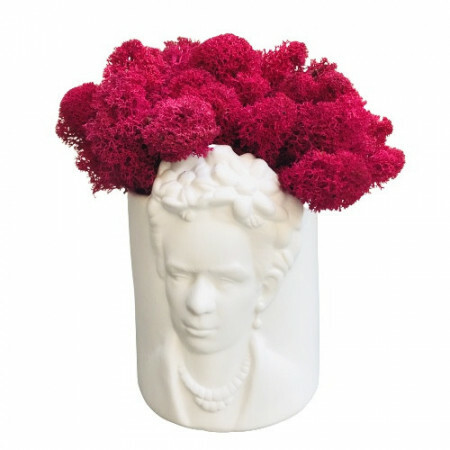A modern ceramic planter adorned with vibrant fuchsia lichens, creating a bold yet natural statement piece for your modern interior.