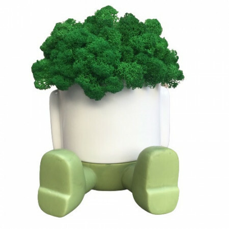 A modern ceramic planter adorned with vibrant green lichens shades, creating a natural statement piece for your modern interior.