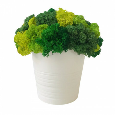 A chic ceramic planter adorned with vibrant mixed green lichens, creating a bold yet natural statement piece for your modern interior.