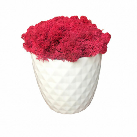 A modern ceramic planter adorned with vibrant fuchsia lichens, creating a bold yet natural statement piece for your modern interior.